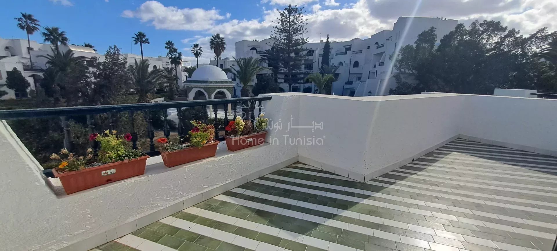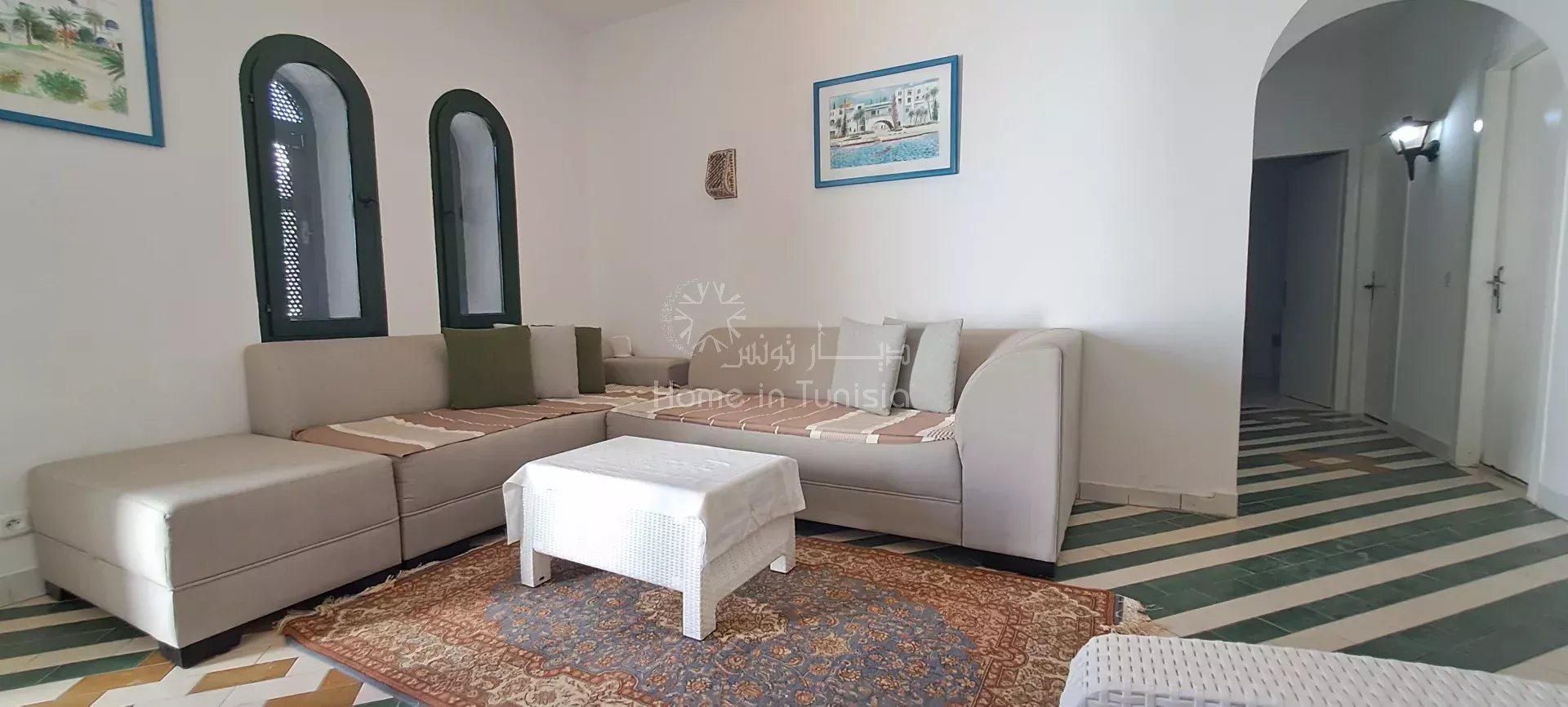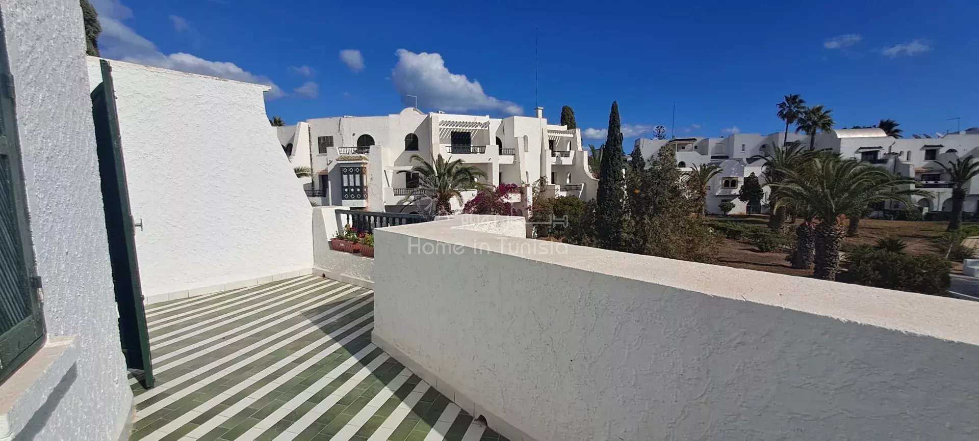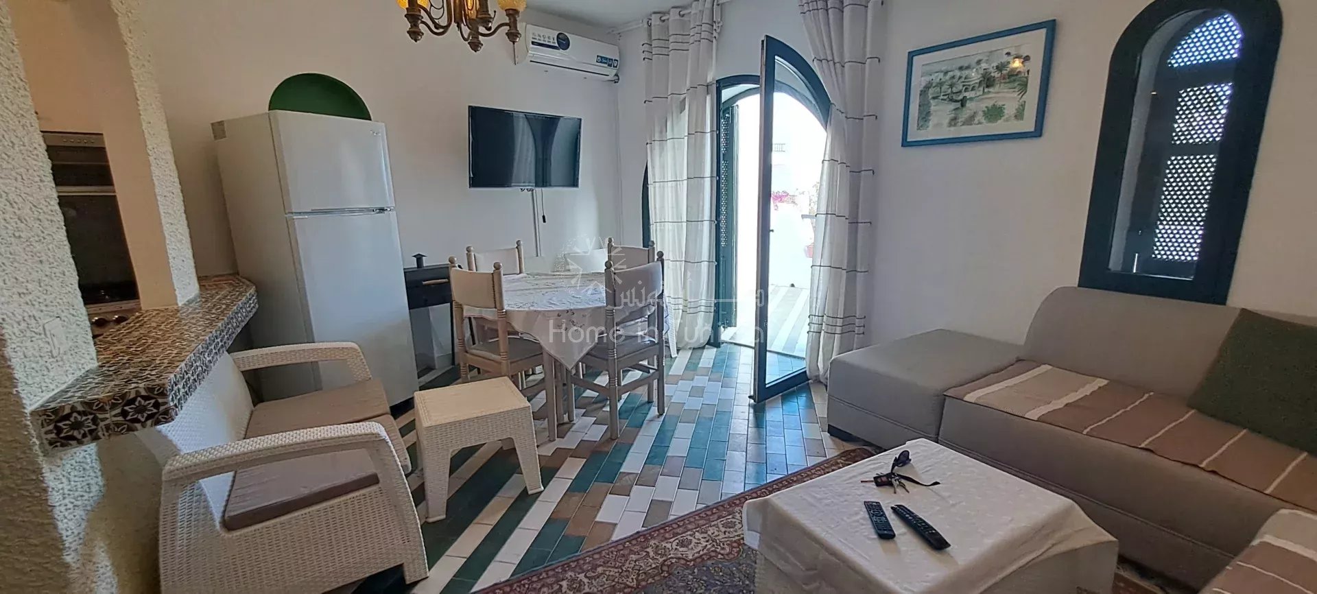 ° Situé à proximité du jardin et du parking, cet appartement bénéficie d’un cadre calme et agréable tout en étant à proximité des commodités de la Marina Kantaoui.