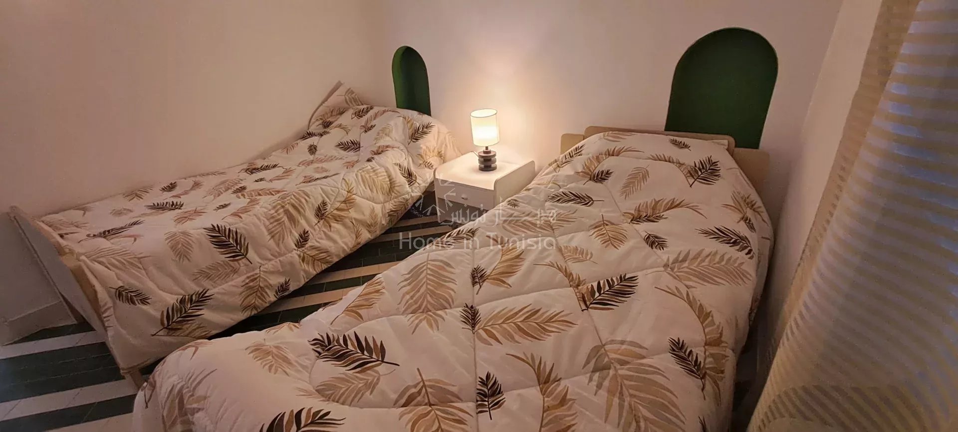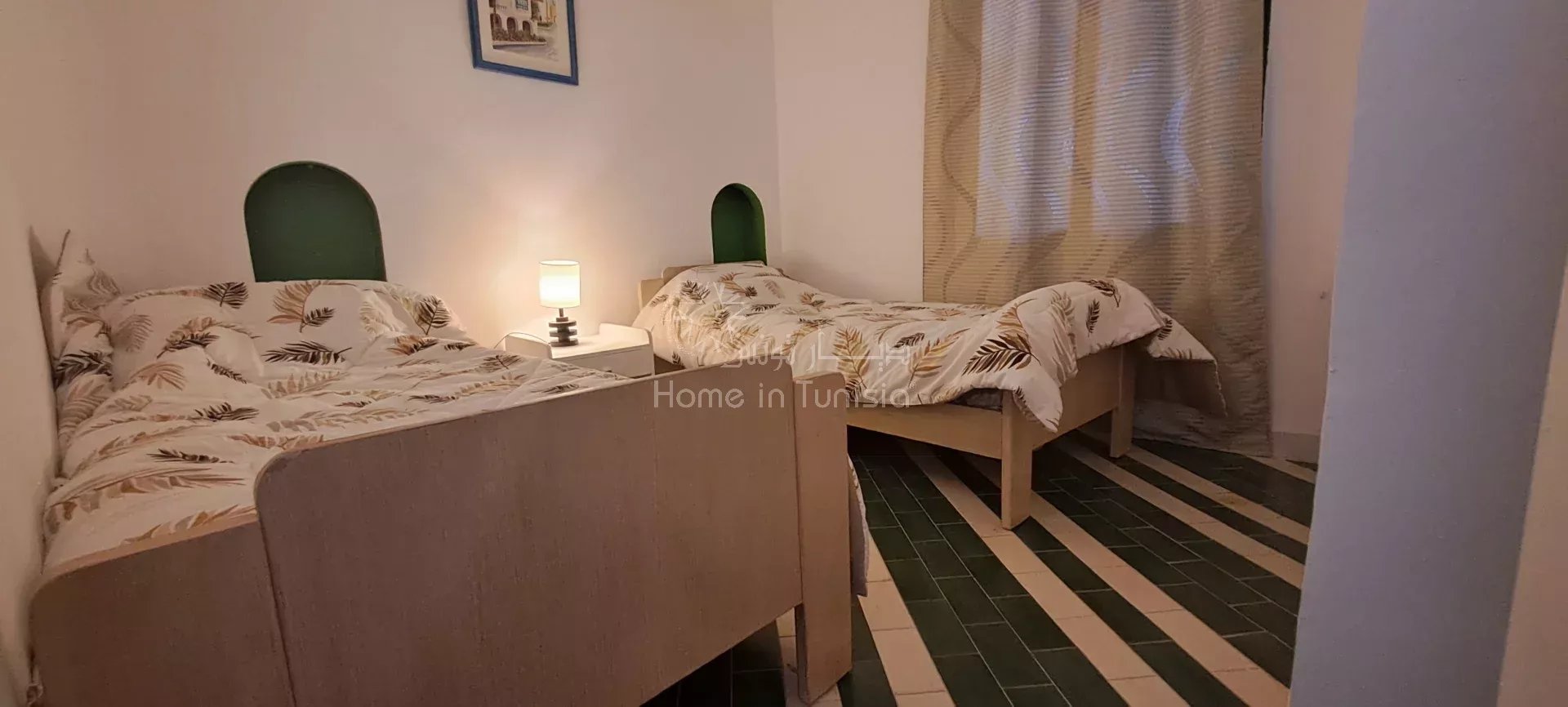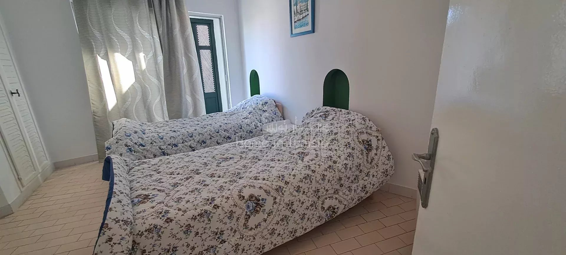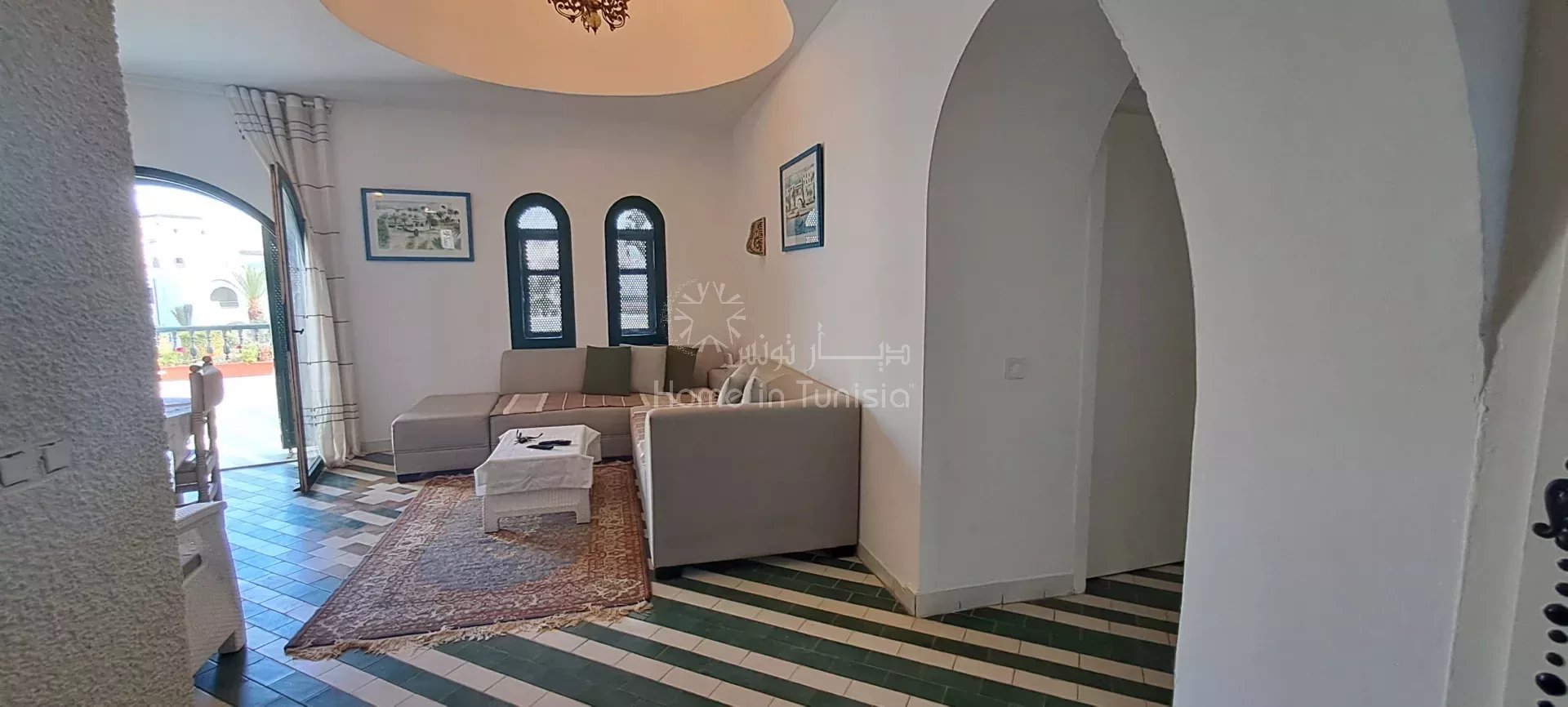 ° Situé à proximité du jardin et du parking, cet appartement bénéficie d’un cadre calme et agréable tout en étant à proximité des commodités de la Marina Kantaoui.